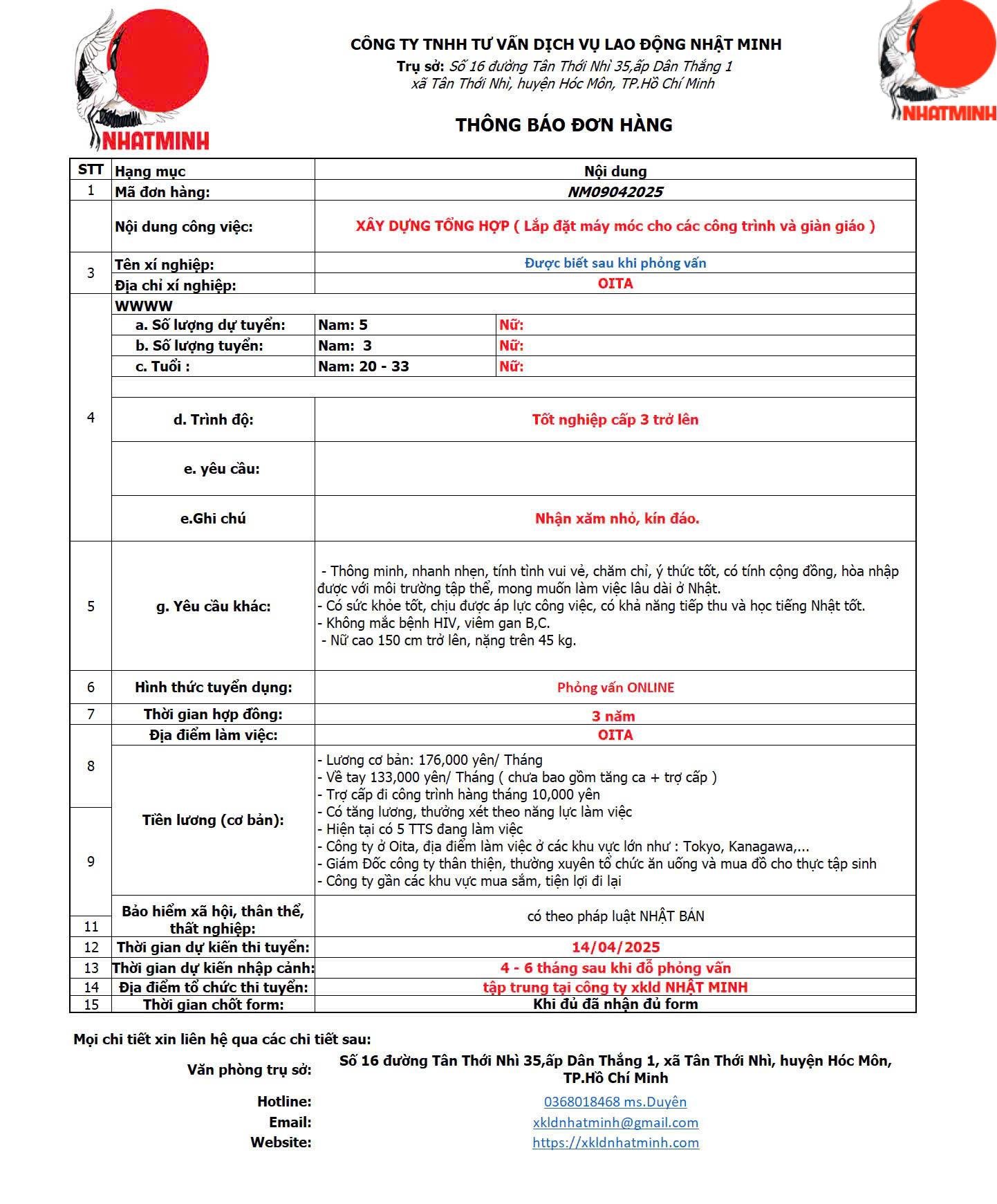 Dự kiến bay: 4-6 tháng sau khi thi đỗ phỏng vấn