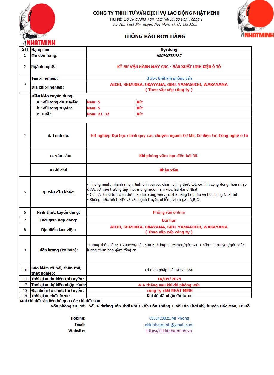 Dự kiến bay: 4-6 tháng sau khi thi đỗ phỏng vấn