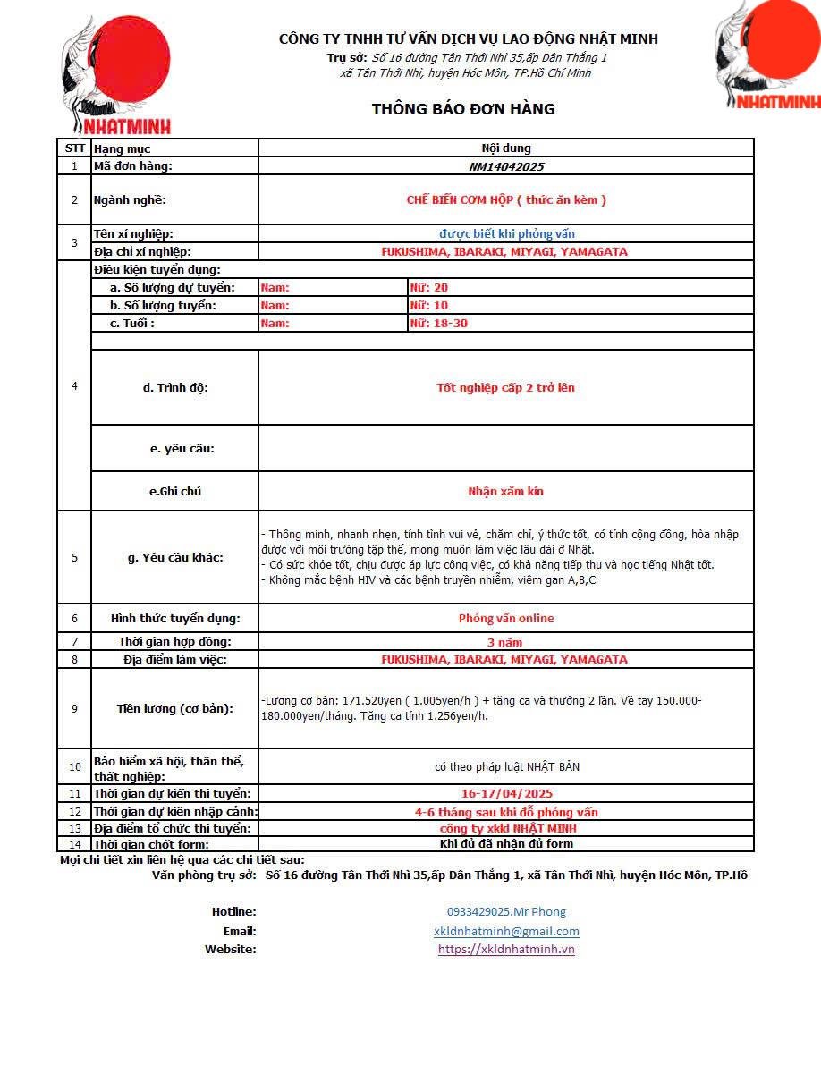 Nơi làm việc: FUKUSHIMA, IBARAKI, MIYAGI, YAMAGATA