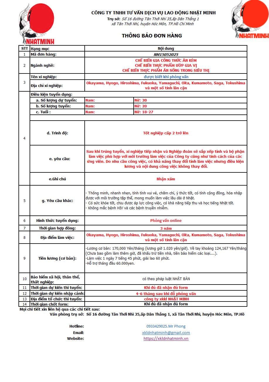 Nơi làm việc: Okayama, Hyogo, Hiroshima, Fukuoka, Yamaguchi, Oita, Kumamoto, Saga, Tokushima và một số tỉnh lân cận