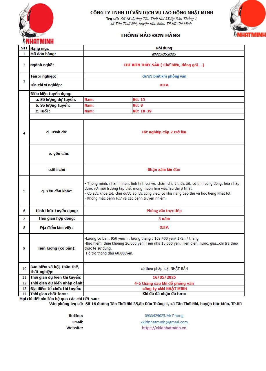 Dự kiến bay: 4-6 tháng sau khi thi đỗ phỏng vấn