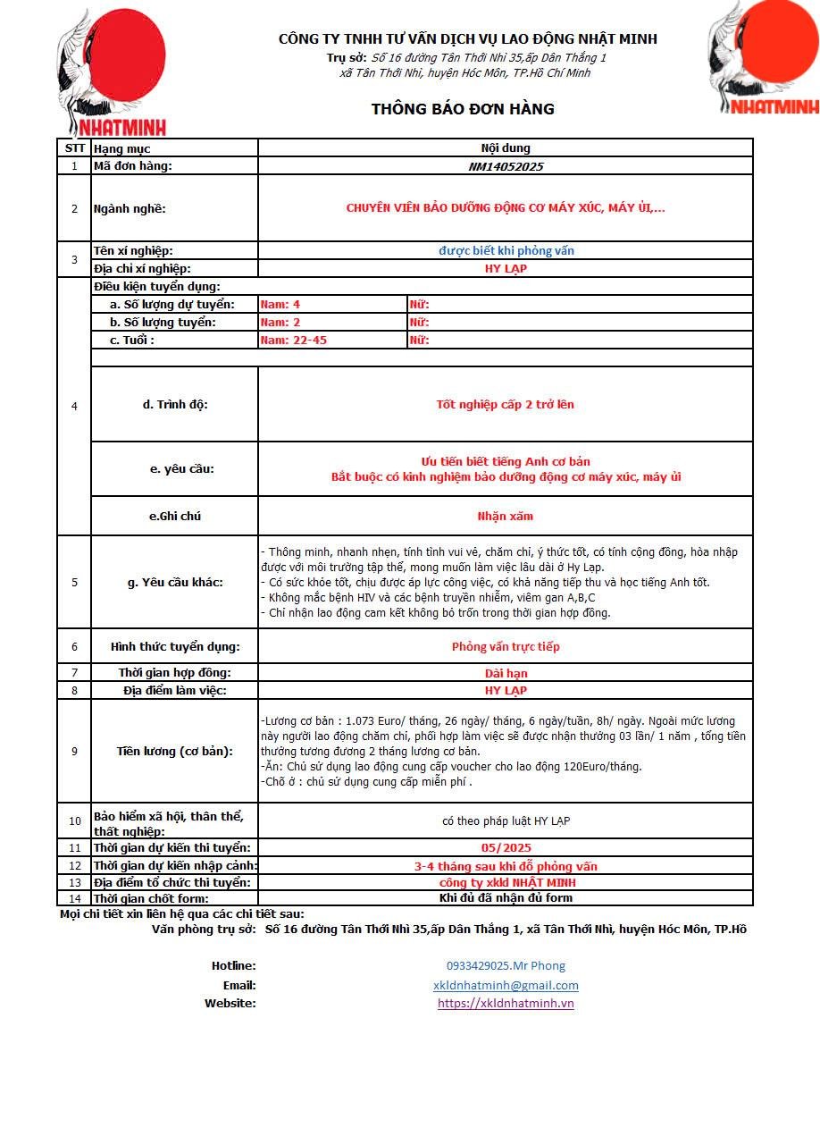 Dự kiến bay: 3-4 tháng sau khi thi đỗ phỏng vấn