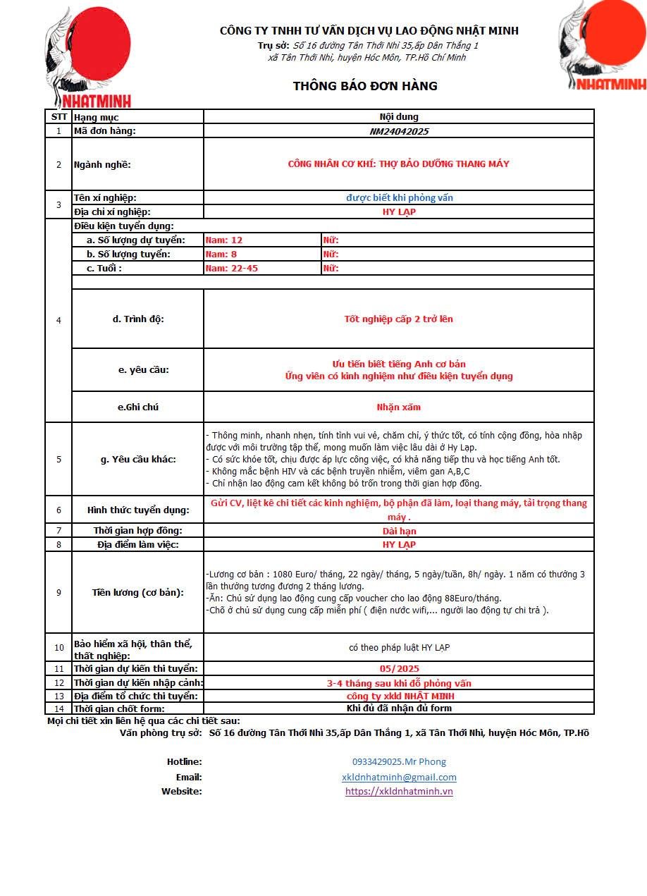 Dự kiến bay: 3-4 tháng sau khi thi đỗ phỏng vấn