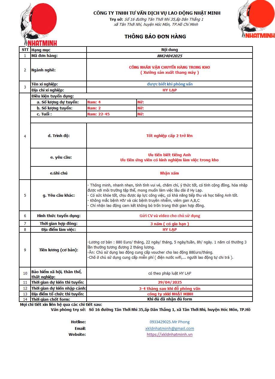 Dự kiến bay: 4-6 tháng sau khi thi đỗ phỏng vấn