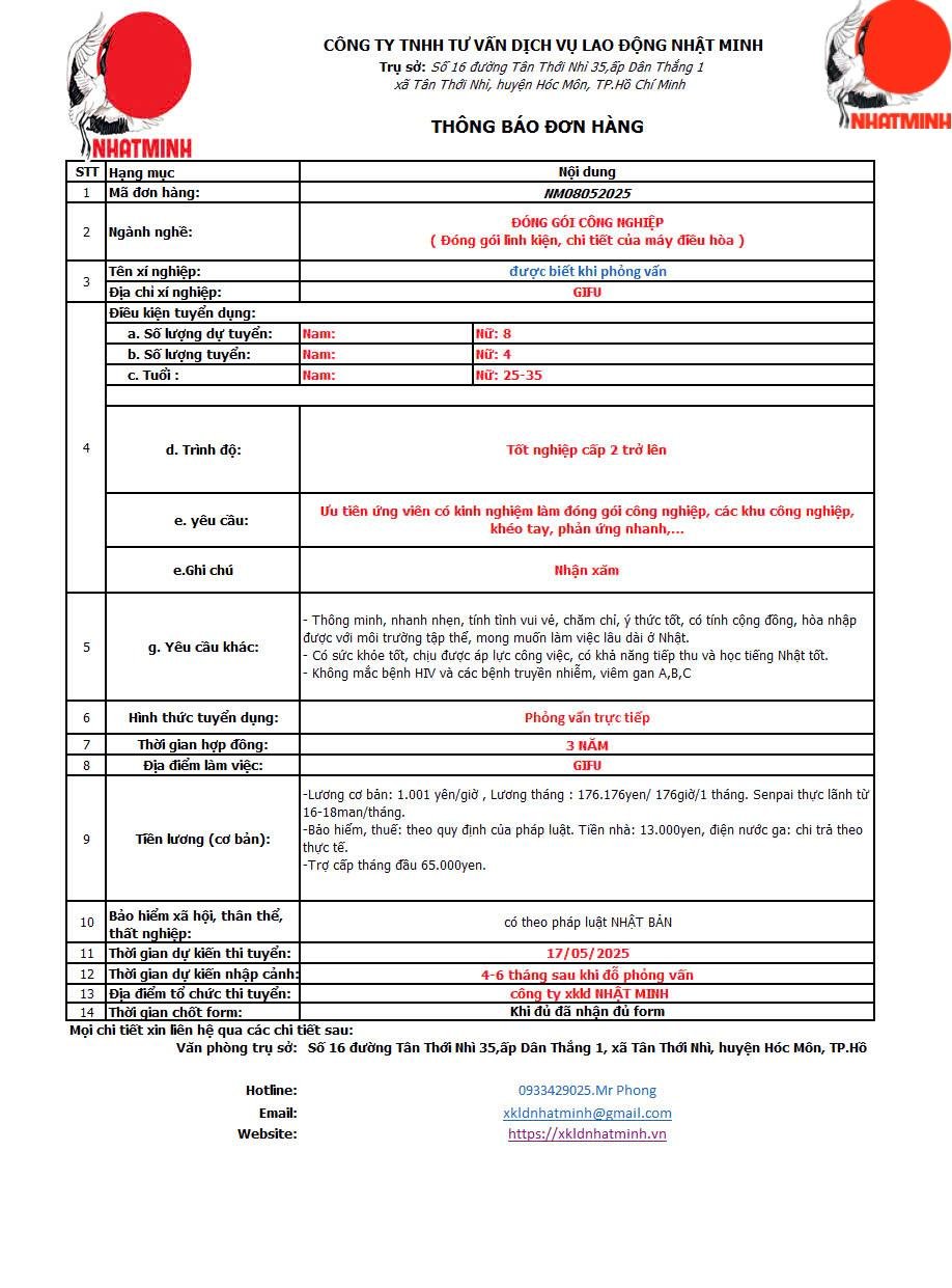Dự kiến bay: 4-6 tháng sau khi thi đỗ phỏng vấn