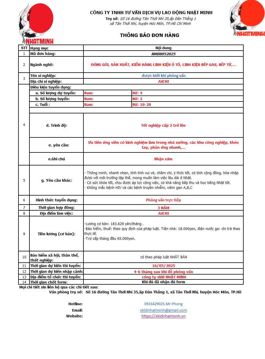 Dự kiến bay: 4-6 tháng sau khi thi đỗ phỏng vấn