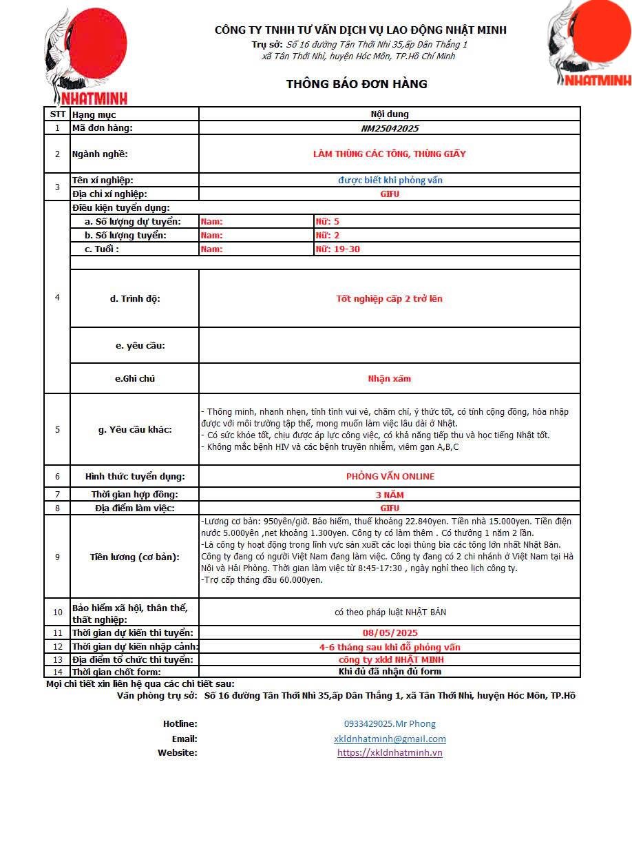 Dự kiến bay: 4-6 tháng sau khi thi đỗ phỏng vấn