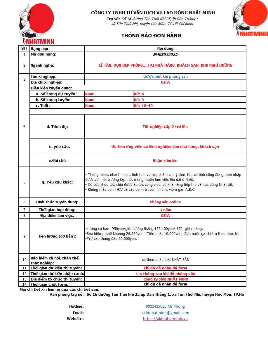 Dự kiến bay: 4-6 tháng sau khi thi đỗ phỏng vấn