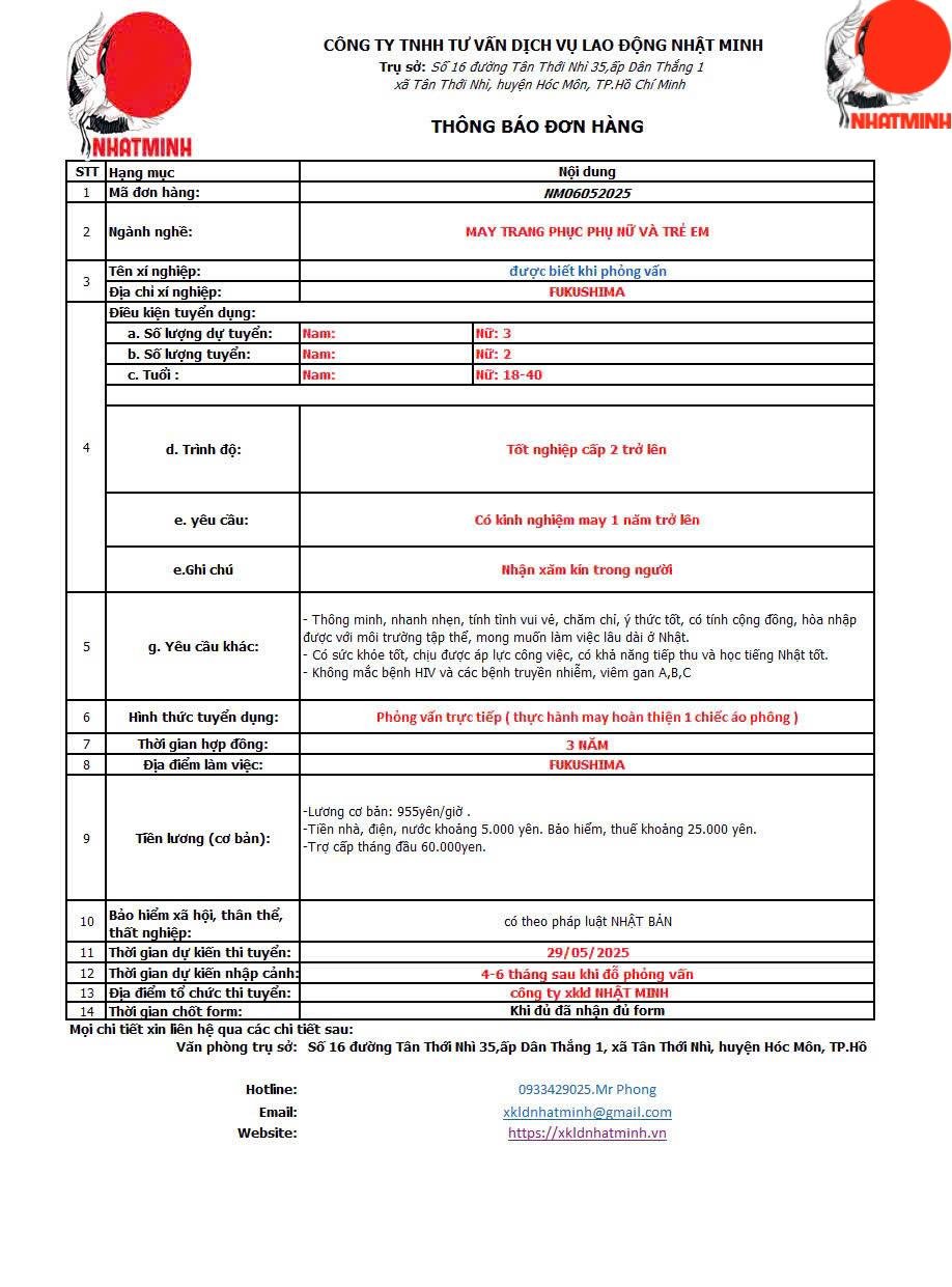 Dự kiến bay: 4-6 tháng sau khi thi đỗ phỏng vấn