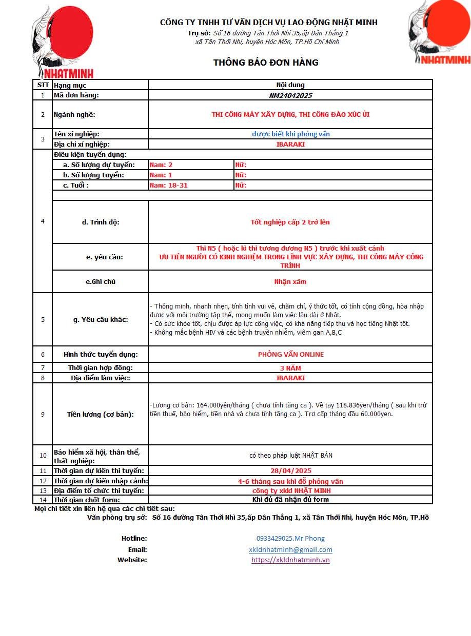 Dự kiến bay: 4-6 tháng sau khi thi đỗ phỏng vấn