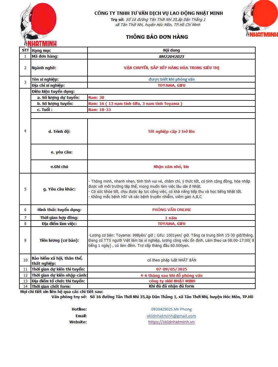 Dự kiến bay: 4-6 tháng sau khi thi đỗ phỏng vấn