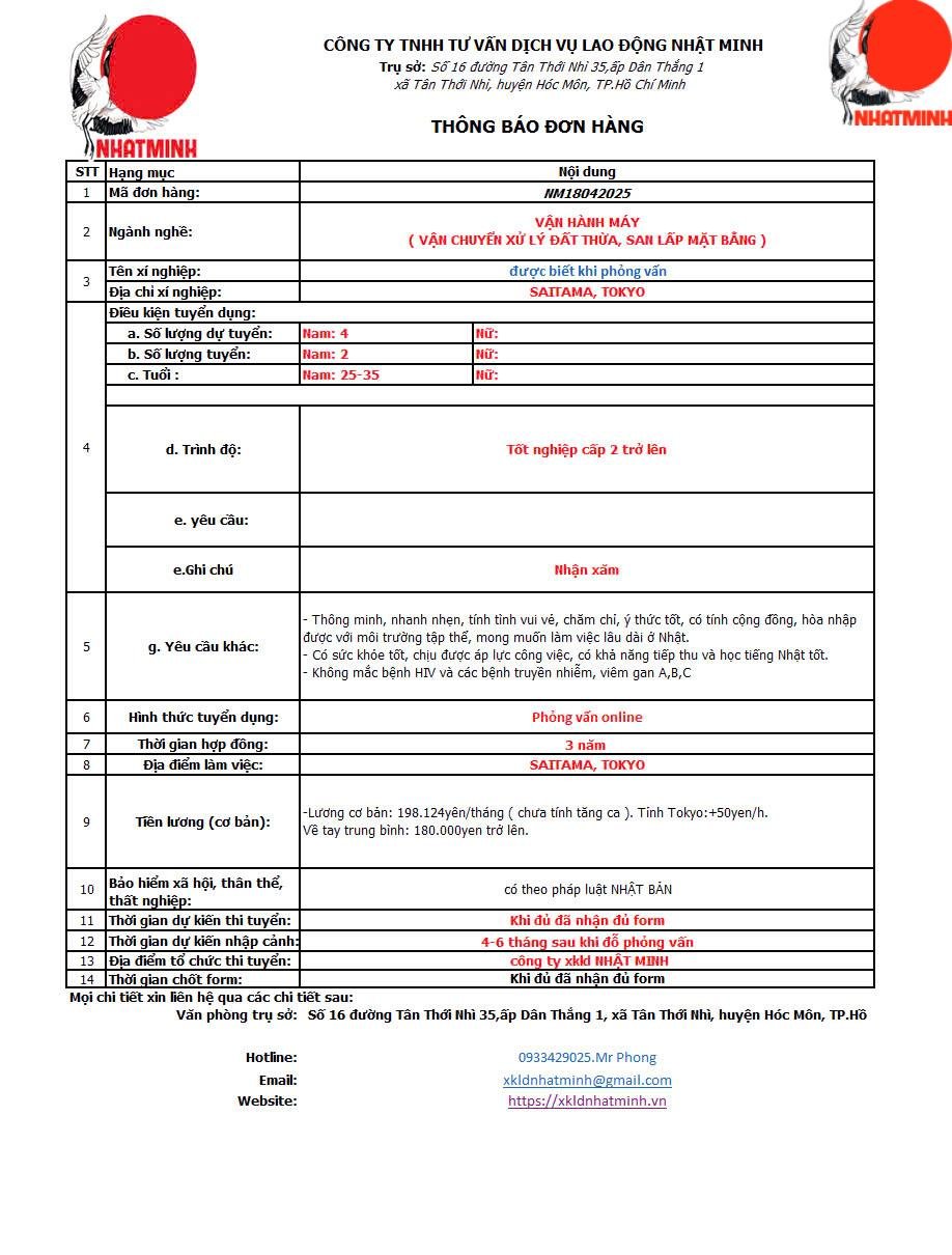 Dự kiến bay: 4-6 tháng sau khi thi đỗ phỏng vấn