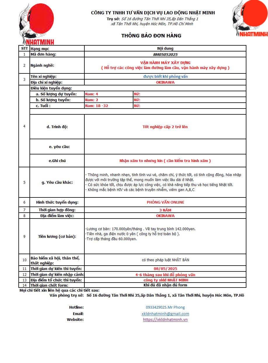 Dự kiến bay: 4-6 tháng sau khi thi đỗ phỏng vấn
