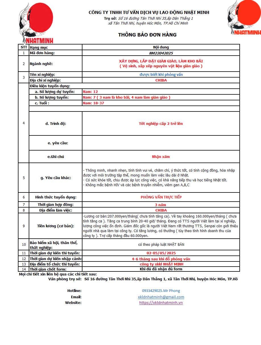 Dự kiến bay: 4-6 tháng sau khi thi đỗ phỏng vấn