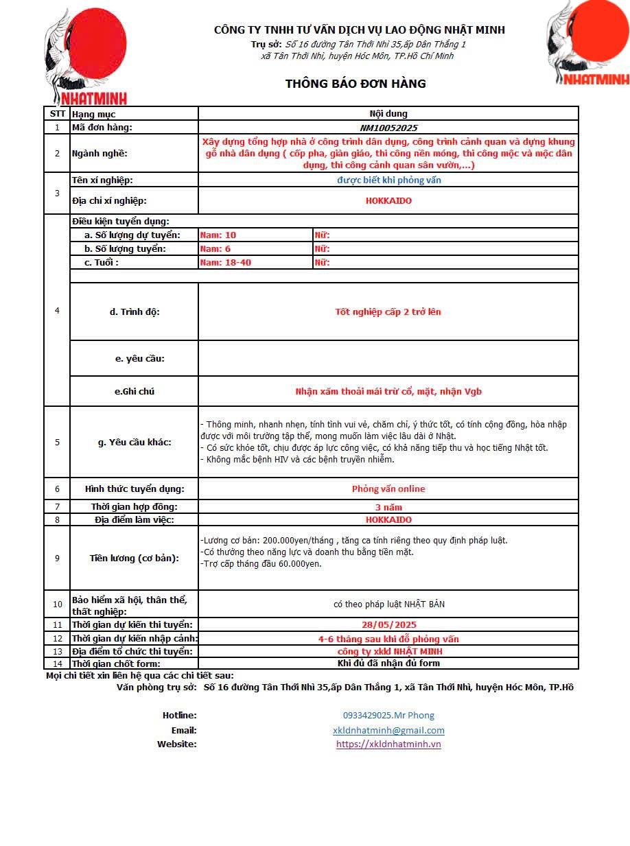 Nơi làm việc: HOKKAIDO